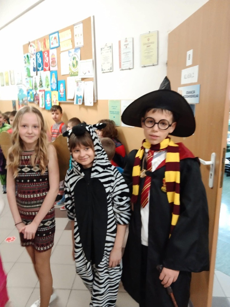 18 stycznia odbył się w naszej szkole bal karnawałowy dla klas 1-3. Już od rana pojawiały się w szkole kolorowe postacie. Dzieci przebrane były za ulubionych bohaterów bajek i filmów. Można było zobaczyć Barbie, księżniczki, królów, pająki, Harrego Pottera, piękną damę z lat dwudziestych itd. Wychowawczynie przygotowały wiele atrakcji, konkursy, zabawy integracyjne, pląsy, tańce z balonami, na gazecie, barwne korowody. Nie zabrakło również poczęstunku, który przygotowali rodzice. Jak nakazuje tradycja, wybrano królową i króla balu w każdej klasie. Pani Dyrektor wręczyła dyplomy i piękne korony zwycięzcom. Pozostali uczestnicy balu otrzymali baloniki i trąbki. Wspólna zabawa dostarczyła naszym wychowankom wiele radości. Panie Wychowawczynie stanęły na wysokości zadania i wykazały się niesamowitą pomysłowością.