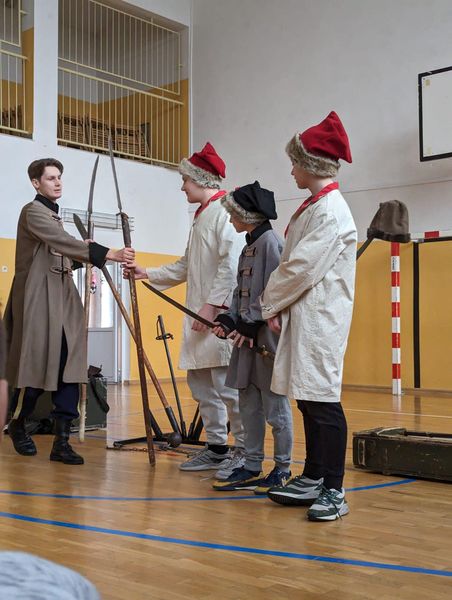W szkole gościliśmy grupę „Rekonstrukto". Uczniowie klas IV-VIII zapoznali się z historią utraty przez Polskę niepodległości oraz próbami jej odzyskania. Podczas żywej lekcji historii goście zaprezentowali historyczne stroje oraz broń z okresu powstań narodowych w XIX w. (M.Zając)