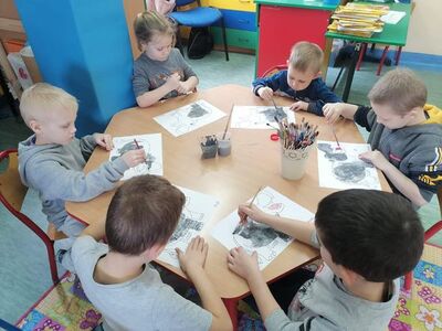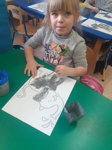 18 marca 2024r. przedszkolaki wzięły udział w zajęciach i zabawach z kolejnym kolorem- szarym. Mimo tego, z czym może kojarzyć się szarość, dzieci z entuzjazmem i radością bawiły się przy piosence o małej myszce, obserwowały z jakich barw można uzyskać kolor szary oraz malowały farbami szare myszki, słonie i hipopotamy.
