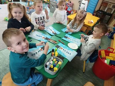 26 lutego dzieci z oddziałów przedszkolnych obchodziły Dzień Koloru Białego. W tym dniu, powtórzyliśmy wszystkie kolory, wyszukiwaliśmy różne skojarzenia z kolorem białym, rozwiązywaliśmy zadania związane z tym kolorem a na koniec każda grupa wykonała biała pracę plastyczną: bałwanek malowany pastą do zębów, misie polarne, białe kleksy i śnieżynkowe wycinanki. Tego dnia każdy z nas przyszedł do przedszkola ubrany w strój z elementami koloru białego.
