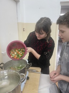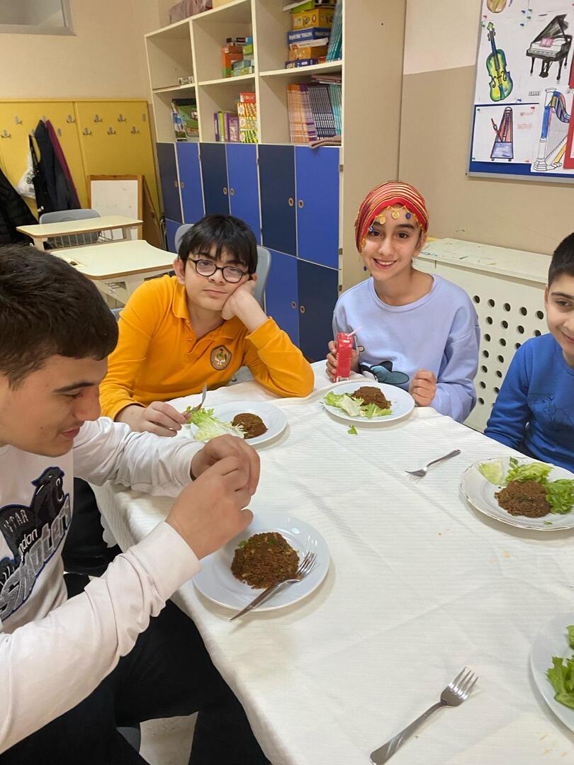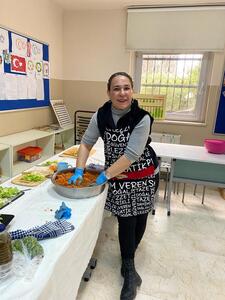 Jak zawsze, nie brakuje nam ciekawych pomysłów i nie możemy usiedzieć w miejscu! Lubimy też nowe wyzwania. Biberli Ekmek i Kuymak to egzotycznie brzmiące nazwy tradycyjnych potraw tureckich, które w ramach projektu eTwinning zostały przygotowane przez uczniów z pięknego Stambułu. Nasi uczniowie zaś ugotowali pyszny domowy rosół z własnoręcznie zrobionym makaronem. Wymienialiśmy się doświadczeniami i zdjęciami z całego przedsięwzięcia online. To była doskonała zabawa, wszyscy byli zadowoleni i najedzeni.