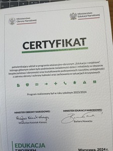 Spotkanie z żołnierzami Spotkanie uczniów klasy 5 z żołnierzami 14 Suwalskiego Pułku Przeciwpancernego. Uczniowie otrzymali certyfikaty uczestnictwa programie edukacyjno-obronnym "Edukacja z wojskiem"(M.Zając) Zdjęcia Zobacz również Wizyta w Stacji Uzdatniania Wody Żyj zdrowo Dzień Matki Spotkanie z żołnierzami Szlakiem kultur-wycieczka z programu Poznajemy... Dzień Dziecka 29 maja 2024 Aktualności Wydrukuj Udostępnij Wyświetlono: 116