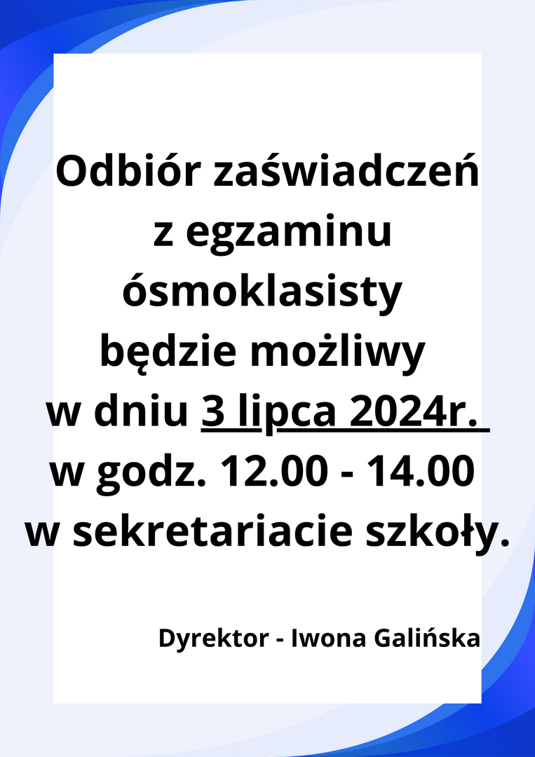 Odbiór zaświadczeń z egzaminu ósmoklasisty