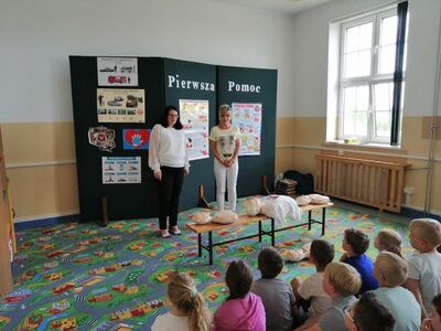 W ubiegłym tygodniu uczniowie klas 1 - 3 brali udział w programie "Ratujemy i uczymy ratować". Podczas zajęć przypomniały zasady udzielania pierwszej pomocy. Następnie dokładnie ćwiczyły pozycję boczną i resuscytację krążeniowo - oddechową. Zajęcia przeprowadziły panie I. Darmetko i A. Ciszewska