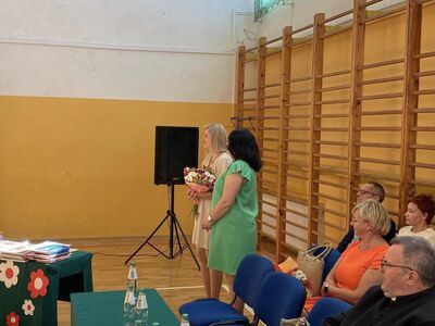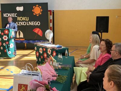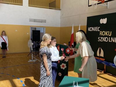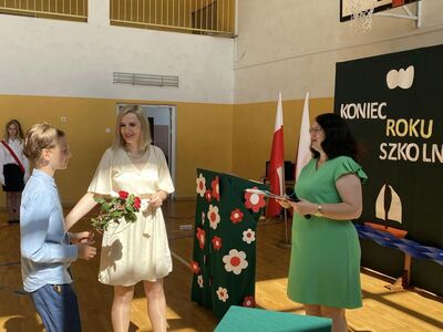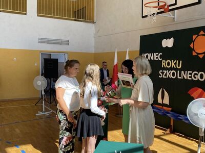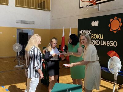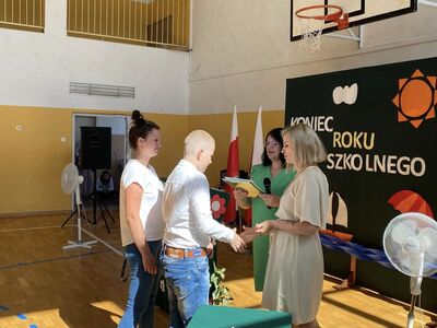 21 czerwca to dzień, w którym mogliśmy przywitać naszych zacnych gości, którzy wspierają naszą szkołę - Pana Wójta, Marcina Brzozowskiego, Panią Sekretarz, Marię Bogdan, Księdza Janusza Chachulskiego, Panią Izabelę Myszkowską i Alicję Trelę z Rady Rodziców oraz Rodziców i Opiekunów naszych uczniów. Uroczyste zakończenie roku szkolnego to poza wręczeniem nagród i świadectw z wyróżnieniem, cała gama pozytywnych emocji, ale też pożegnań. Nasza droga Pani Teresa Pietkiewicz odchodzi na emeryturę, a my życzymy jej odpoczynku i zdrowia! Pani Jolanta Staśkiewicz obchodzi jubileusz 25 lat pracy w szkole. Życzymy dalszych sukcesów i owocnej pracy, a także miłych doświadczeń w pracy z młodzieżą. Pragniemy też podziękować za 10 miesięcy pracy i zaangażowania pani Sylwii Ratasiewicz, Oldze Świerzbin-Sowulewskiej i panu Rafałowi Lejmelowi. Spisaliście się świetnie, byliście zawsze pomocni i solidni! Wracając do uczniów- pani Dyrektor Iwona Galińska wręczyła ponad 40 świadectw z wyróżnieniem i nagród. To naprawdę wspaniały wynik- gratulujemy uczniom! Najwyższą średnią uzyskała Nina Tertel. Brawo! Kochani, warto uczyć się i zawsze podążać za swoją pasją! (M.Leszczyńska, fot. Rafał Lejmel)