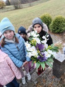 Dnia 31.10.2024r. delegacja Małego Samorządu Szkoły Podstawowej w Przerośli (kl. 2 SP oraz grupa 6-latków wraz z wychowawczyniami) udała się na Grób Poległych, aby złożyć kwiaty i zapalić znicz. W ten sposób dzieci oddały hołd poległym, którzy walczyli w obronie naszej Ojczyzny. Był to też czas wspólnej zadumy i modlitwy - lekcja historii dla najmłodszych.