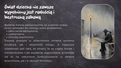 Bezpieczne dzieciństwo jest dobrą inwestycją w przyszłość Zachęcamy do zapoznania się z prezentacją przygotowaną przez panią psycholog, Ewę Świerzbin Zdjęcia Załączniki Bezpieczne dzieciństwo jest dobrą inwestycją w przyszłość [45.20 MB] Zobacz również Kiermasz dla chorej Małgosi Udział w uroczystościach upamiętniających Jarosława... Dzień bez przemocy Bezpieczne dzieciństwo jest dobrą inwestycją w... Zaproszenie do Konkursu Wiedzy o Święcie Dziękczynienia Naleśniki z KGW Przeroślanki 18 listopada 2024 Aktualności Wydrukuj Udostępnij Wyświetlono: 77