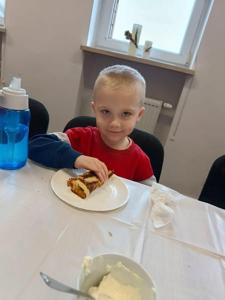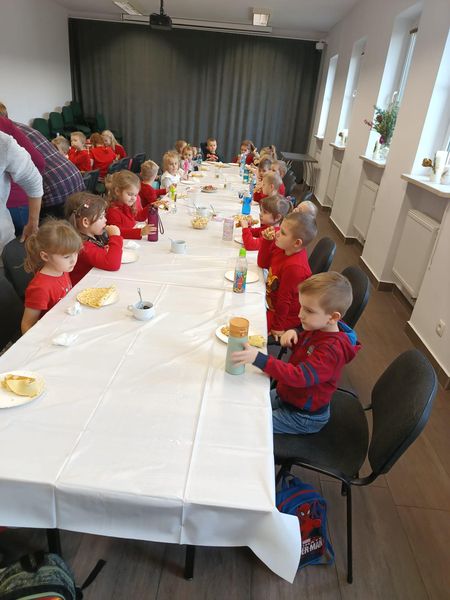 W dniach 19 i 20 listopada dzieci z Oddziałów Przedszkolnych uczestniczyły w zajęciach kulinarnych organizowanych przez Panie z Koła Gospodyń Wiejskich ,,Przeroślanki" pt. ,,Naleśnikowa Poezja". Dzieci same dobierały dodatki, z którymi chciały zjeść naleśniki. Dziękujemy bardzo za mile spędzony czas i wspaniałą atmosferę. Było bardzo pysznie. E.Pupel