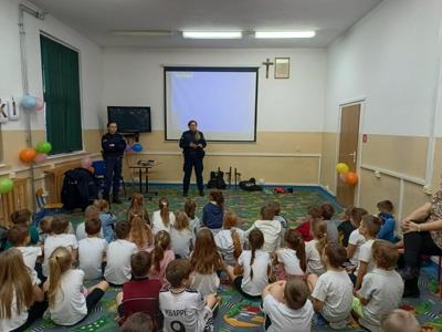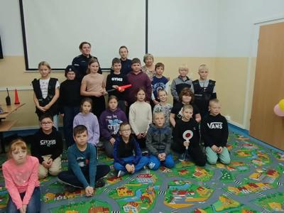 28 listopada klasy I - III uczestniczyły w spotkaniu z policjantkami. Przypomniały sobie reguły prawidłowego i bezpiecznego poruszania się po drogach. Zapoznały się z zasadami bezpieczeństwa na śniegu i lodzie. Uczniowie mogli zobaczyć wybrane elementy wyposażenia policjanta i ubrać się w kamizelkę czy zatrzymać "pojazd". Dzieci były bardzo zadowolone z prelekcji i wizyty gości. Paniom Monice Zielińskiej i Katarzynie Klimko bardzo dziękujemy.