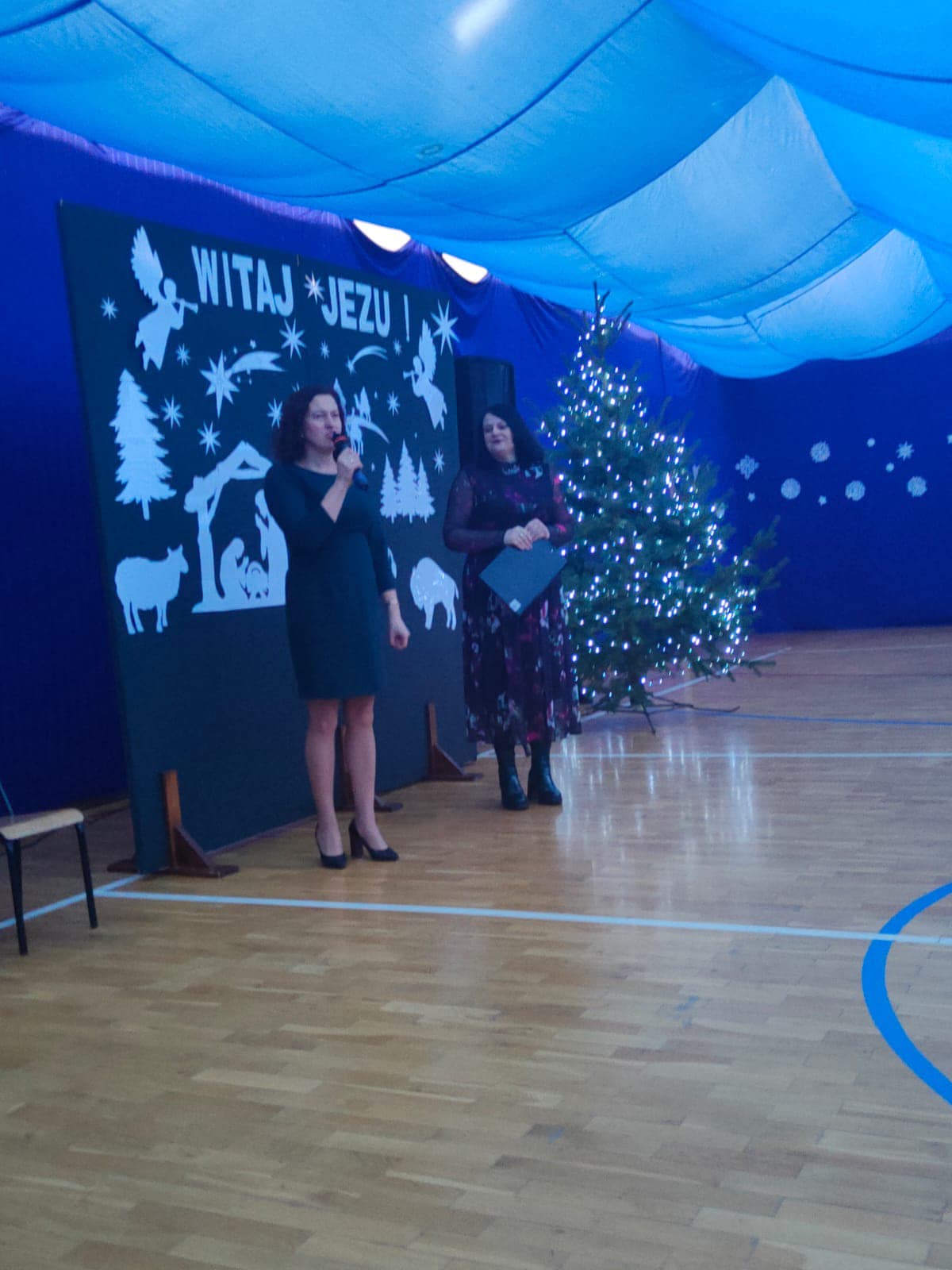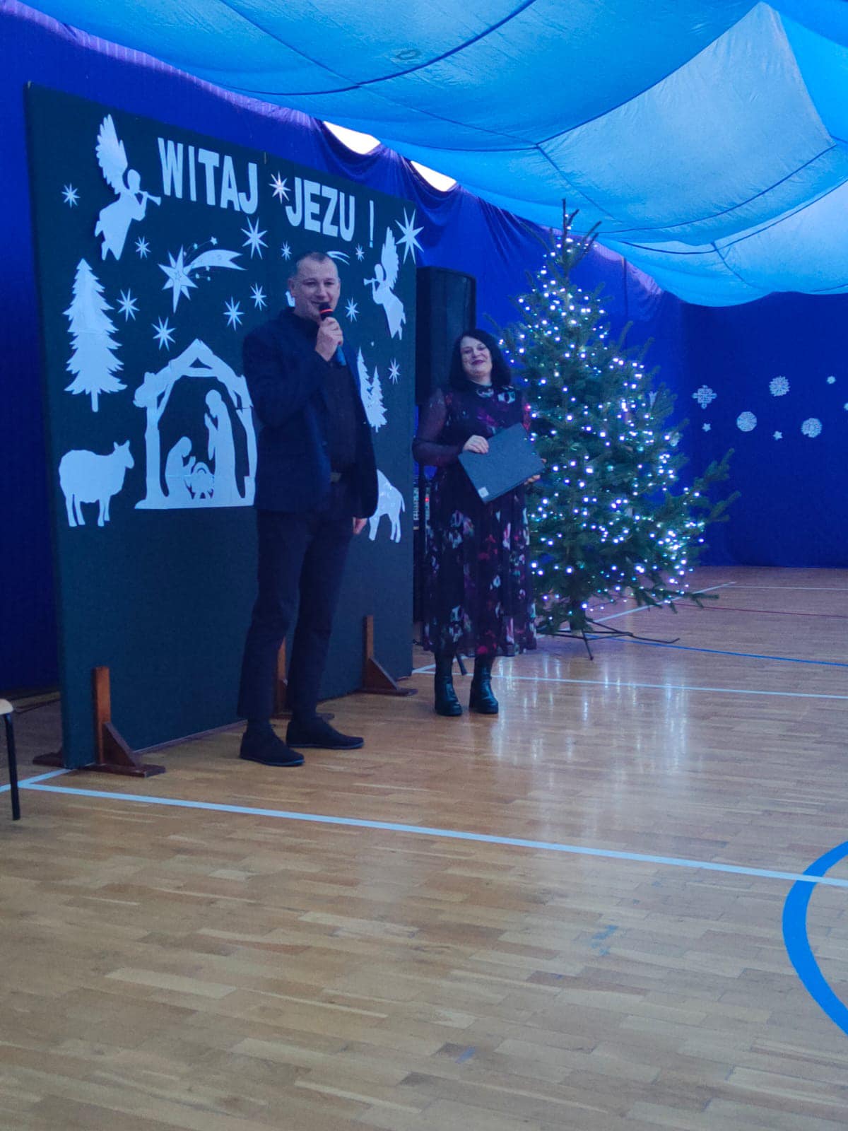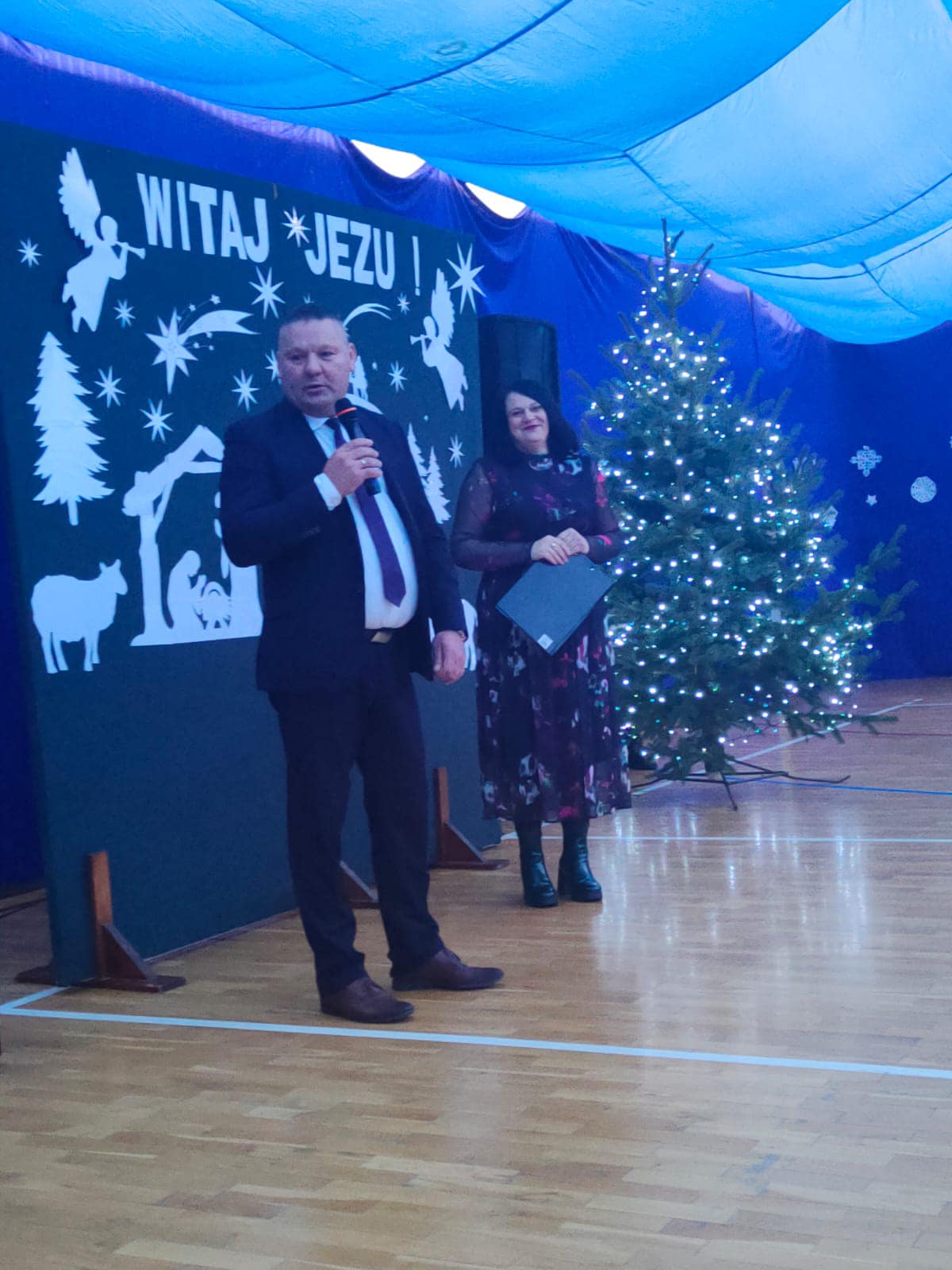Przedświąteczne spotkanie szkolne. Dziękujemy naszym miłym gościom za przybycie, miłe chwile, śpiewanie kolęd, ciepłe życzenia i wspólne obejrzenie jasełek. Niektórym pracownikom i nauczycielom rozdane też zostały listy gratulacyjne z tytułu jubileuszu pracy. Uczniowie zostali przygotowani przez p. B.Buzę i D.Dobrzyń. (fot.E.Mentel, A.Ciszewska)