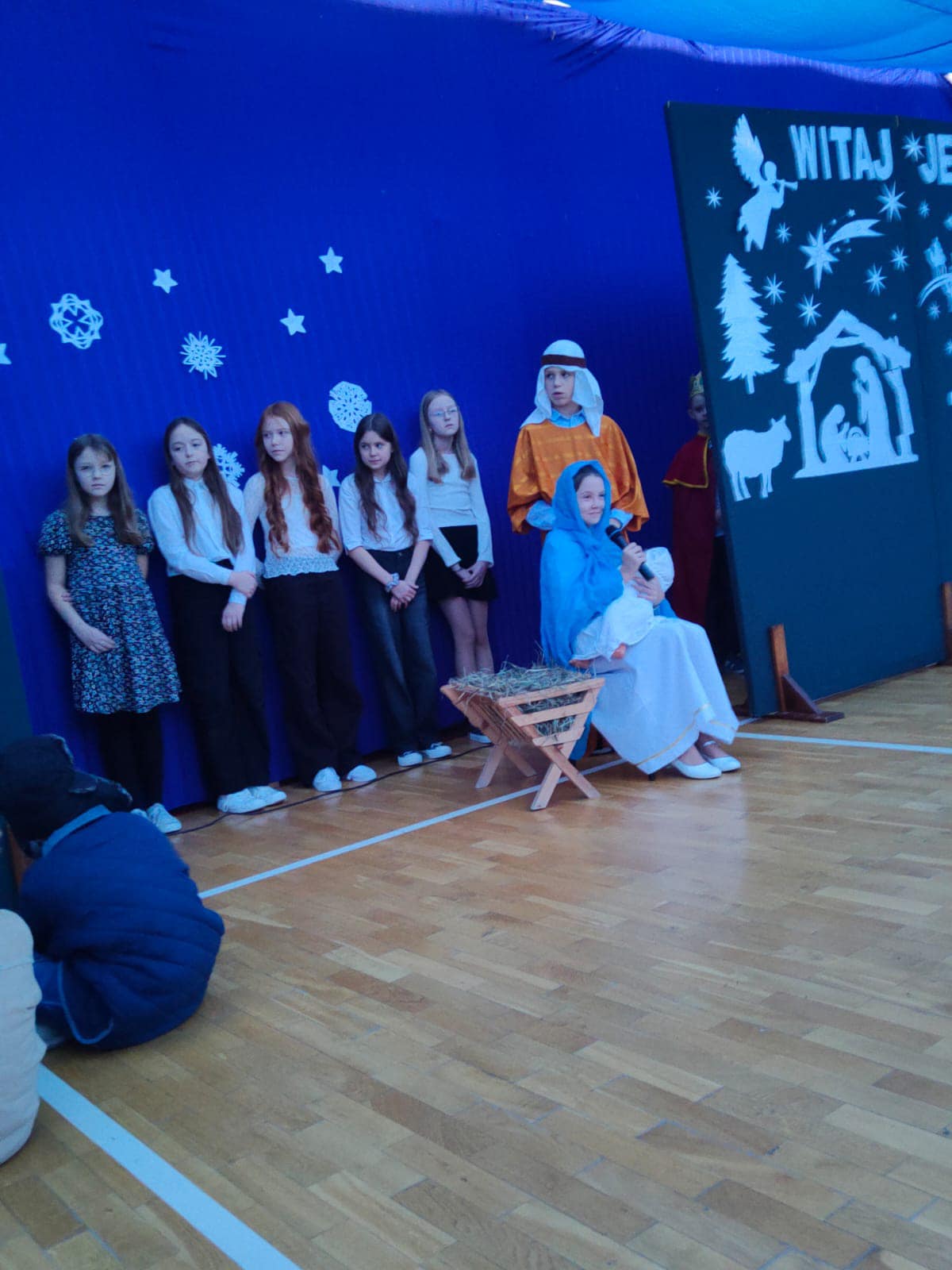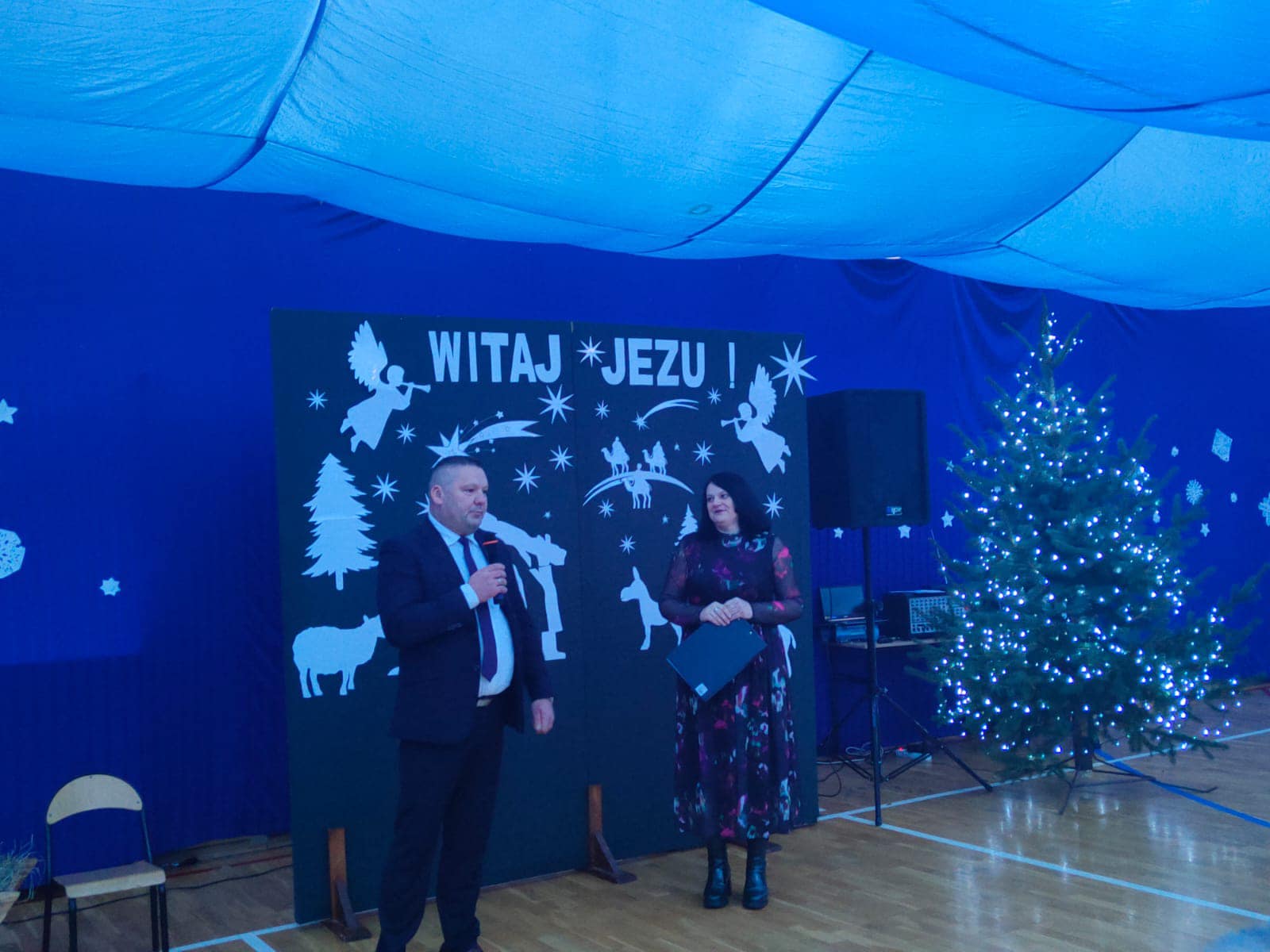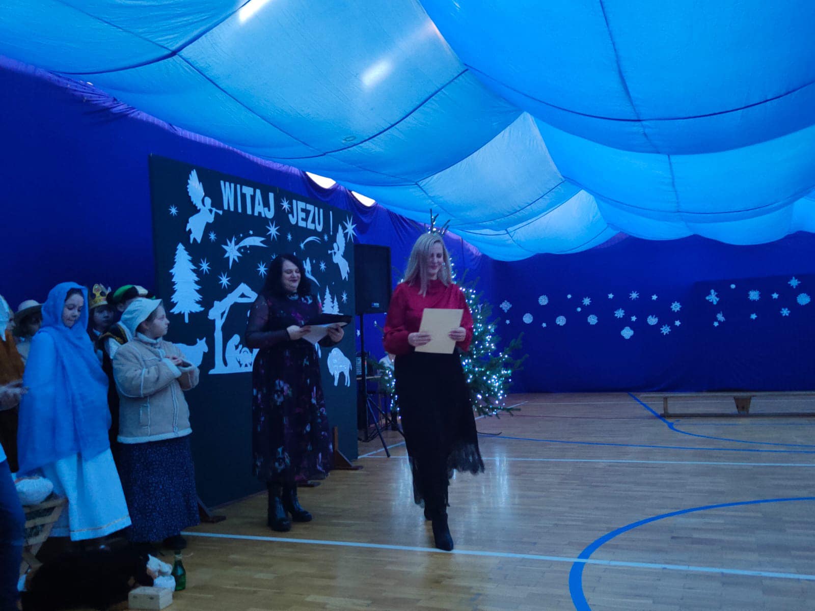 Przedświąteczne spotkanie szkolne. Dziękujemy naszym miłym gościom za przybycie, miłe chwile, śpiewanie kolęd, ciepłe życzenia i wspólne obejrzenie jasełek. Niektórym pracownikom i nauczycielom rozdane też zostały listy gratulacyjne z tytułu jubileuszu pracy. Uczniowie zostali przygotowani przez p. B.Buzę i D.Dobrzyń. (fot.E.Mentel, A.Ciszewska)