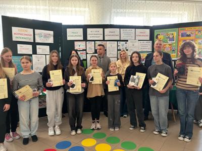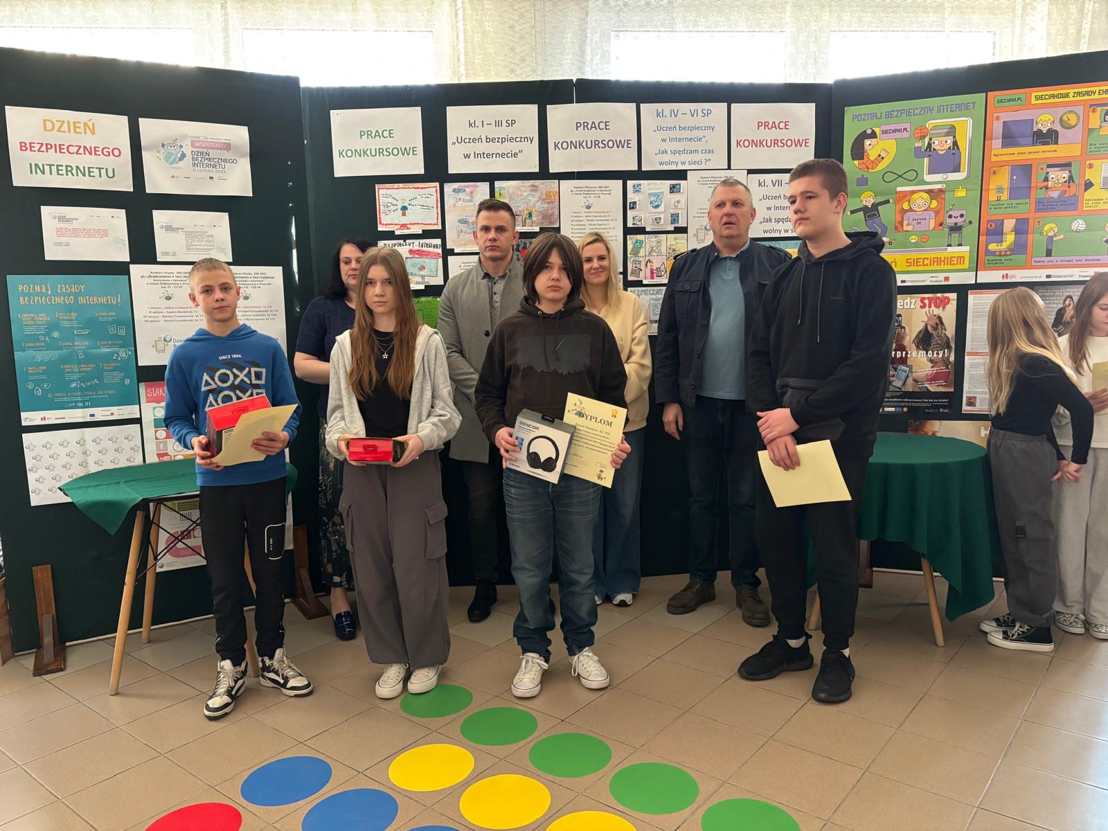 Dzień Bezpiecznego Internetu 2025 odbywał się pod hasłem "Działajmy razem!". W ramach tej inicjatywy nasza szkoła promowała profilaktykę zapobiegania przemocy, a szczególnie cyberprzemocy. Obchody DBI w naszej placówce podobnie jak na całym świecie rozpoczęliśmy w dniu 11.02.2025 r. Uczniowie zostali zapoznani z celami, tematyką i działaniami, które miały zostać zrealizowane w dniach 11.02.2025 – 11.03.2025. W ramach zaplanowanych działań powstała gazetka tematyczna nt. „ Bezpieczeństwo w sieci i bezpieczne korzystanie z Internetu” oraz wystawa prac konkursowych. Działaniami objęliśmy wszystkich 168 uczniów z klas I-VIII SP. W dniach od 11.02.2025 r. do 18.02.2025 r. we wszystkich klasach odbyły się pogadanki z wychowawcami jak też w ramach zajęć informatyki i edukacji informatycznej odbyły się lekcje nt.: Bezpieczeństwa w sieci i bezpiecznego korzystania z Internetu. Zorganizowano konkurs wiedzy w dwóch kategoriach wiekowych: dla uczniów klas IV-VI i VII–VIII SP na temat: „ Bezpieczeństwo w sieci i bezpieczne korzystanie z Internetu” oraz konkurs na pracę plastyczną dla uczniów klas I–III oraz IV-VI i VII-VIII SP nt. „Dzień Bezpiecznego Internetu: „Uczeń bezpieczny w Sieci”, „ Jak spędzam czas wolny w Sieci. Ponadto zgłoszono udział naszej szkoły w powyższej inicjatywie na ogólnopolskim portalu www.dbi.pl. Spotkanie podsumowujące dotyczące ww. działań odbyło się w dniu 11.03.2025 r. Na spotkaniu podsumowano i ogłoszono wyniki konkursów oraz wręczono uczniom nagrody rzeczowe i dyplomy. Wręczenia nagród rzeczowych dokonał p. Rafał Lejmel - Przewodniczący GZI w Gminie Przerośl oraz Wicedyrektor szkoły Monika Leszczyńska-Leończuk. Dyplomy uczniom wręczyła Dyrektor szkoły Iwona Galińska. Obchody Dnia Bezpiecznego Internetu 2025 zorganizował szkolny koordynator cyberbezpieczeństwa - p. Sławomir Małachowski.
