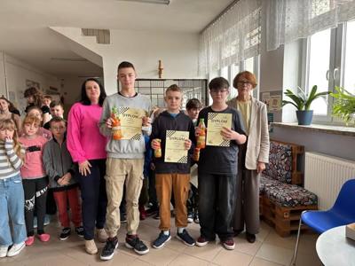 Turniej szachowy w naszej szkole! Kolejny raz rozegrany został w naszej szkole Szkolny Turniej Szachowy. W rywalizacji wzięło udział 25 uczniów w trzech kategoriach wiekowych. W kategorii klas III-IV najlepszymi okazali się: I miejsce - Krystian Szender, kl. IV II miejsce - Mikołaj Nartowicz, kl. III III miejsce - Franciszek Atkielski, kl. IV Najwyższe wyniki w kategorii klas V-VI uzyskali: I miejsce - Kuba Atkielski, kl. VI II miejsce - Maciej Grzymkowski, kl. VI III miejsce - Krystian Podziewski, kl. VI. W kategorii klas VII-VIII najwyższe wyniki uzyskali: I miejsce- Damian Sznurkowski - Wiszniewski, kl. VIII II miejsce- Michał Pupel, kl. VII Jakub Chmielewski - kl. VIII. Wszyscy uczestnicy otrzymali pamiątkowe dyplomy oraz owocowe upominki, a zwycięzcy otrzymali puchary. Dziękujemy Radzie Rodziców za fundusze na zakup nagród. Wszystkim uczestnikom gratulujemy.(E.Zając)