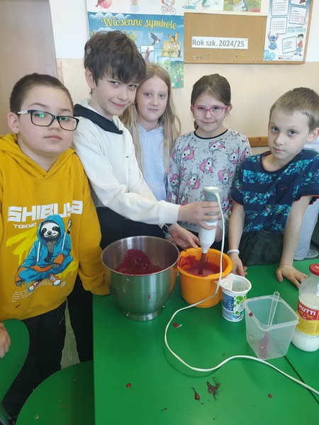 W kwietniu, w ramach akcji "ŻYJ ZDROWO" klasa III przygotowywała na zajęciach kolorowe i zdrowe koktajle. Po wykonaniu nastąpiła ich degustacja. Były pyszne!(E.Staniszewska)