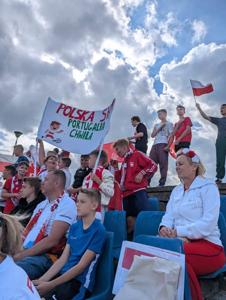 We wtorek 9 IX 2025r. grupa uczniów z naszej szkoły wzięła udział w akcji "Biało - Czerwoni - razem po zwycięstwo". Kibicowaliśmy naszym zawodnikom podczas meczu reprezentacji Polski U 20 z reprezentacją Portugalii U 20 na Miejskim Stadionie w Suwałkach. Emocje sięgały zenitu. Opiekunowie: E.Rynkiewicz, M. Zając