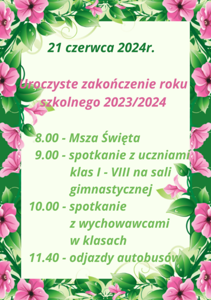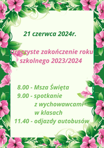 11 czerwca 2024 Aktualności Zakończenie roku szkolnego 2023/2024 (Oddziały Przedszkolne) Czytaj więcej