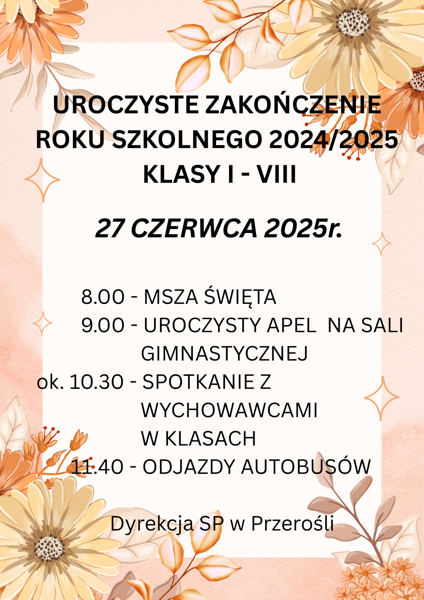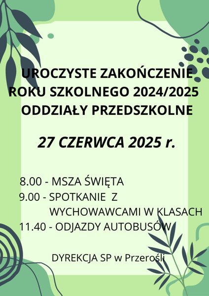 11 czerwca 2025 Aktualności Uroczyste zakończenie roku szkolnego 2024/2025 - Oddziały... Czytaj więcej