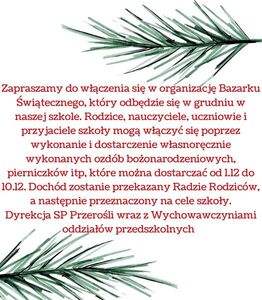 Zaproszenie do udziału w Bazarku Świątecznym